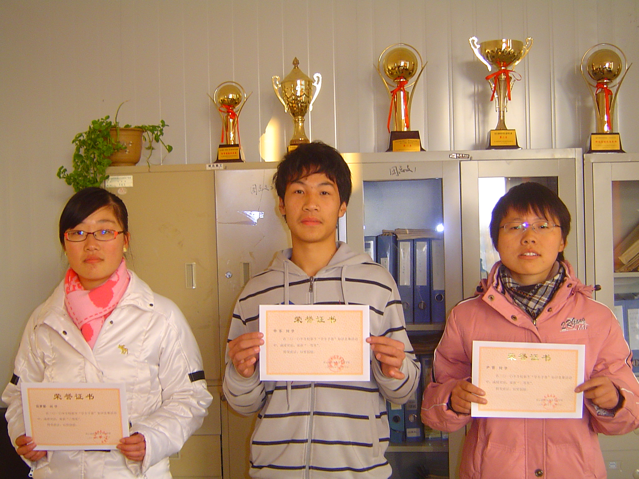 在公司比赛之前,我系组织10级员工认真学习《员工守册》,并在班级组织考试,选拔优秀选手,为公司比赛做充分的准备。在公司比赛中,我系的选手们都严格遵守考场秩序,全神贯注,认真答题,取得了理想的成绩,分别为:10思政的华东获一等奖,10思政尹青获得二等奖,10 历史教育张梦影获得三等奖,由于我系组织工作积极充分、选手成绩名列前茅,所以我系荣获优秀组织奖。