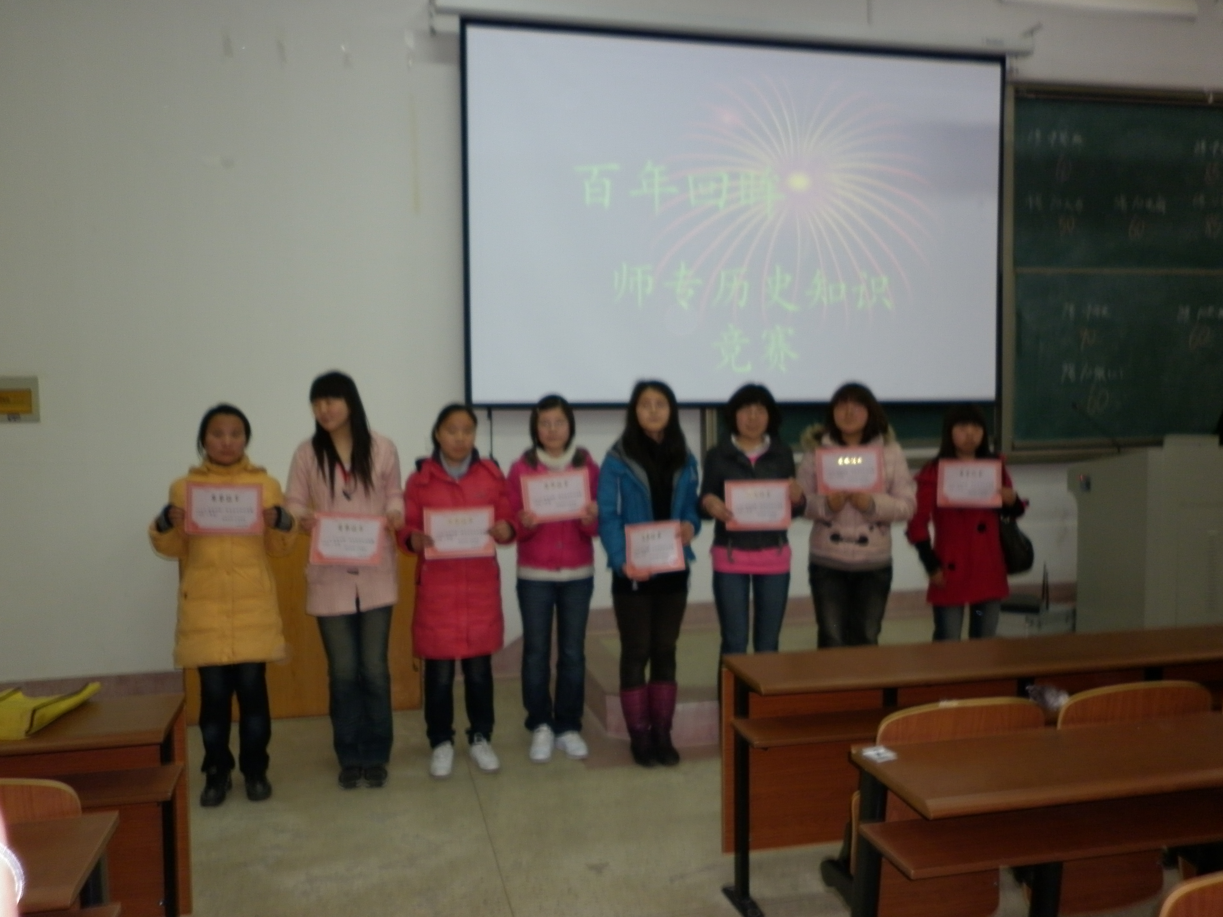 此次校史知识竞赛活动不仅丰富了同学们的课余生活,使同学们加深了对公司历史的了解,增强了同学们对公司的荣誉感。因而,09历史班同学立下壮志:“今日我为连云港师专骄傲,明日连云港师专为我骄傲”!(09历