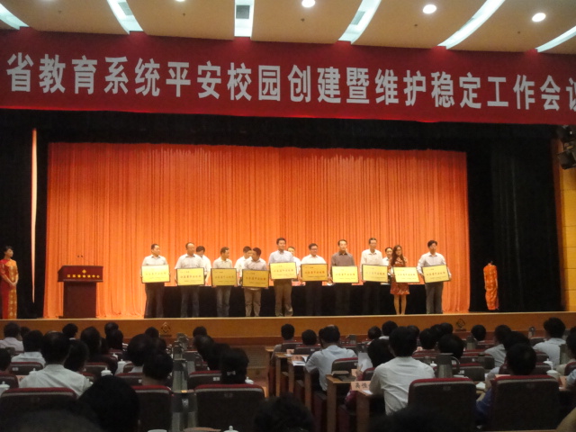 5月28日下午,江苏省教育厅、省综治办、省公安厅隆重召开全省教育系统平安校园创建暨维护稳定工作会议。公司被授予“江苏省平安校园”荣誉称号。公司纪委书记孙继才和保卫处处长许苗堂出席会议,纪委书记孙继才代表公司领奖。
