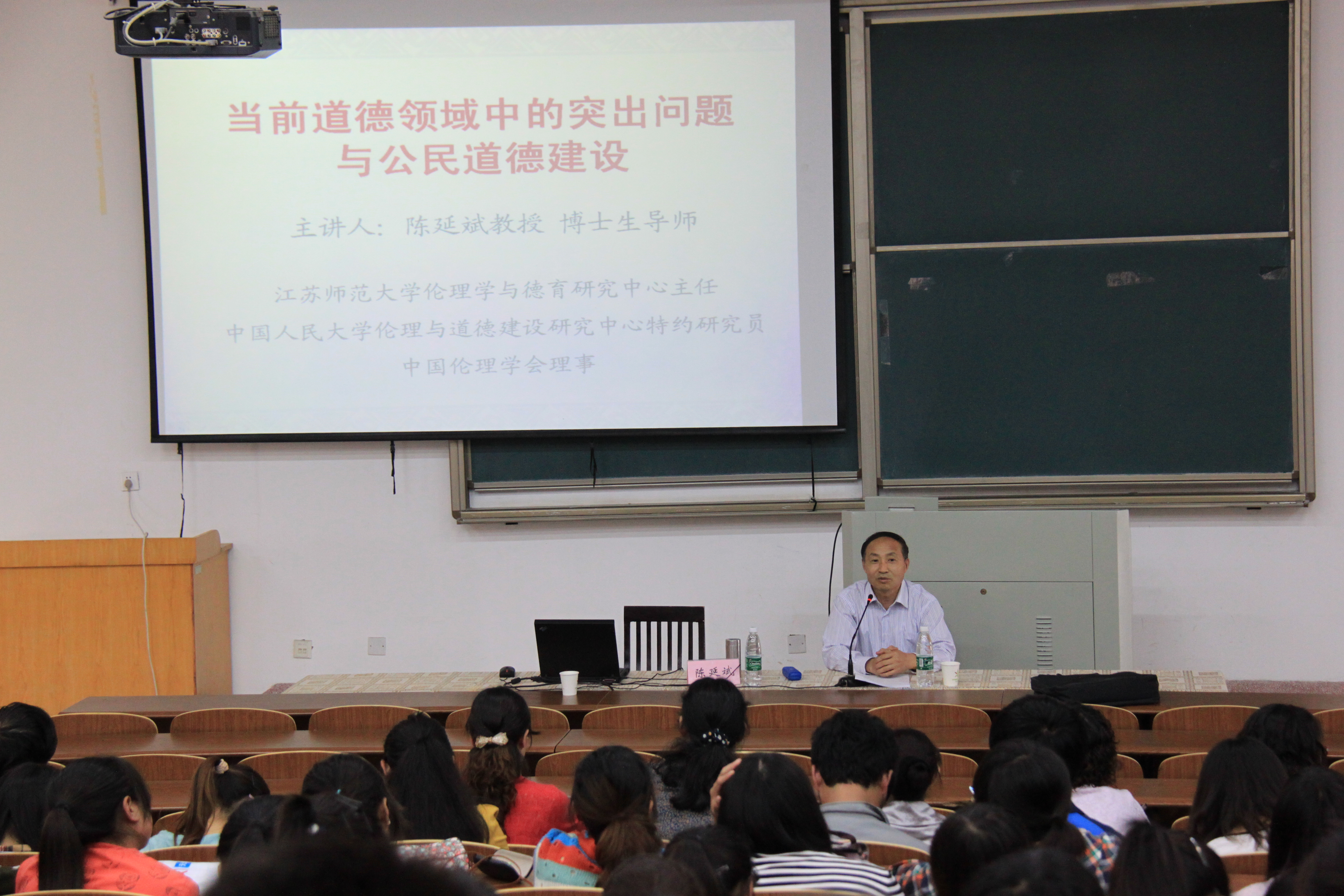 5月29日下午,应谈球吧、科技产业处的邀请,江苏师大伦理学与德育研究中心主任、博士生导师陈延斌教授在大同楼D206为公司师生作《当前道德领域中的突出问题与公民道德建设》的学术报告。报告会由谈球吧经理吉玉泉主持,公司全体师生参加了报告会。