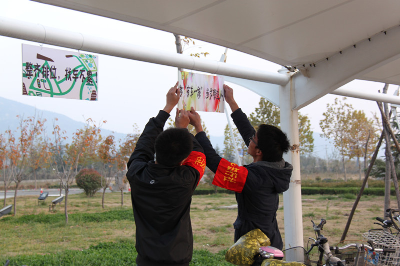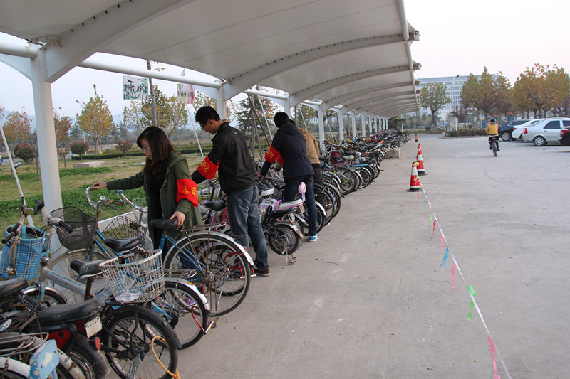 美丽校园是同学们学习和生活的大本营,但是,教学楼下、宿舍门口和食堂门前到处杂乱摆放的自行车却破坏着美丽的风景,也影响了行人与车辆的通行。为了给大家营造一个秩序井然,整洁和谐的校园环境,谈球吧和校红色社团知行社向全校员工发出倡议:美丽师专,秩序同行。希望同学们自觉遵守、相互监督、杜绝乱停放现象,养成良好的文明停车习惯,携手共创美丽校园。活动在公司知行社指导老师的精心组织下成功开展,每天上午和下午知行社的同学们佩戴统一的工作证和袖章,分组来到大同楼、宿舍楼、食堂等自行车摆放区认真检查、细致整理,经过大家的共同努力校园自行车摆放整齐划一,秩序井然。