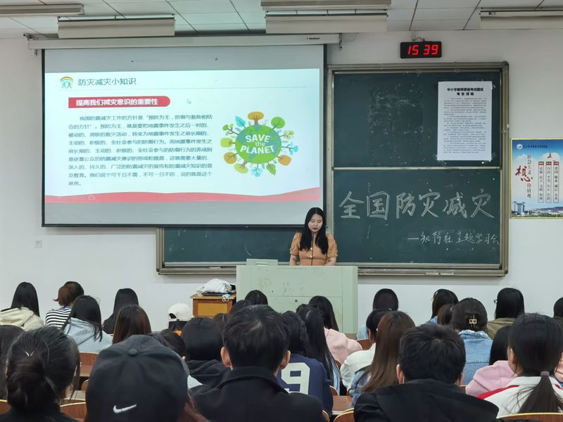此次活动的授课人在活动前认真准备PPT和演讲稿,各部负责人有序安排活动的各个环节。主题教育会上,授课人带领大家学习地震、洪水台风、沙尘暴泥石流、雷电火灾等方面的防护知识以及其他自然灾害的预防与应对,怎样有效自救与互救,尽量避免或减少灾害造成的损失。同时,授课人给大家讲解了我国“防灾减灾日”的由来、图标以及其设立的意义。期间还安排了防灾减灾知识问答活动。
