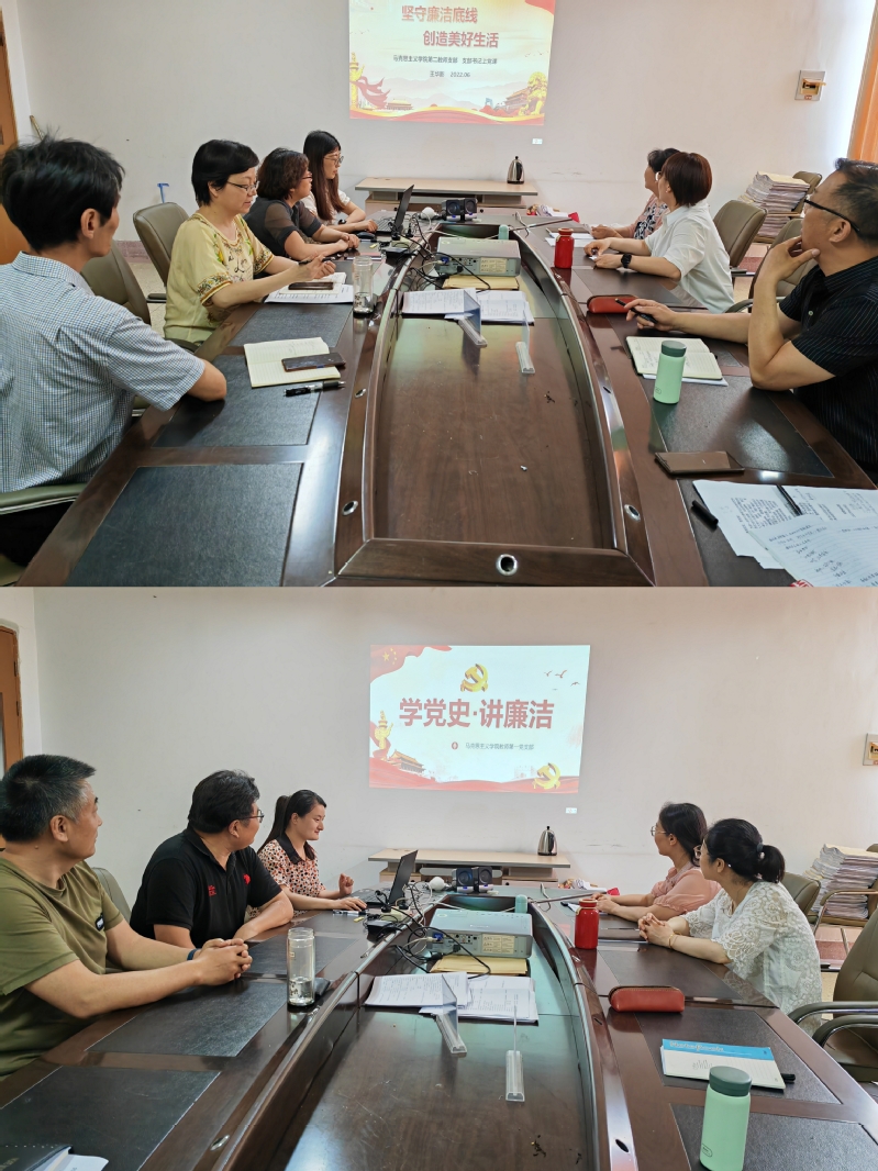 沈晓燕以《当前全面从严治党面临的阶段性特征——学习习近平总书记中纪委六次会议讲话精神》为主题分四个方面进行讲解。通过学习我们了解了当前全面从严治党面临的阶段性特征,深入理解了当前全面从严治党新的阶段性特征与“四大考验”之间的关系。谈球吧教师第一党支部书记贺明卫围绕《学党史 讲廉洁》主题上了一堂生动的党课。贺明卫同志从学习党史的意义、党的发展历程、学党史 讲廉洁 永葆共产党人本色、廉洁永远在路上四个方面对党史学习廉洁问题做了讲解。谈球吧教师第二党支部书记王华影围绕《坚守廉洁底线 创造美好生活》主题上了一堂廉洁党课。王华影从面对诱惑必须时刻保持警惕、面对权力必须时刻保持清醒、面对幸福必须时刻保持珍惜、面对条例必须时刻保持敬畏四个方面对党员保持清正廉洁做了解读。