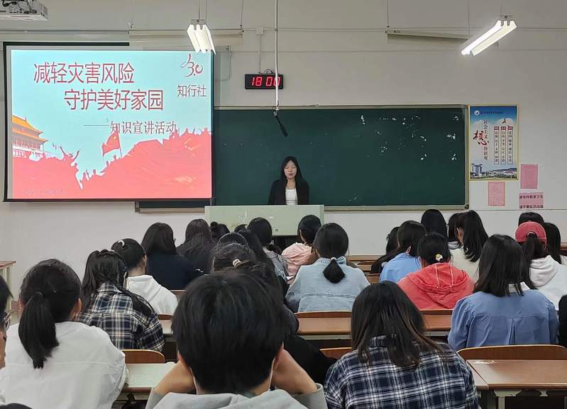 5月10日,知行社组织社团成员在大同楼B206举办“减轻灾害风险,守护美好家园”知识宣讲活动。活动伊始,宣讲人以图片、视频和文字等形式为同学们介绍引发灾害的原因及灾害带来的恶劣影响,让同学们对灾害的突发性和破坏性有进一步的了解,从而引发同学们对灾害的认识与反思。随后,宣讲人通过现场演示与咨询答疑等方式,向同学们普及防灾减灾相关法律法规,常见灾害的预防措施及应对方法,全民应知应会的安全应急知识和自救互救技能。活动现场互动氛围浓厚,参加活动者积极认真参与。为巩固活动成效,最后由活动主持人给同学们分发防灾减灾调研问卷,提升同学们对防灾减灾相关知识的理解与运用。