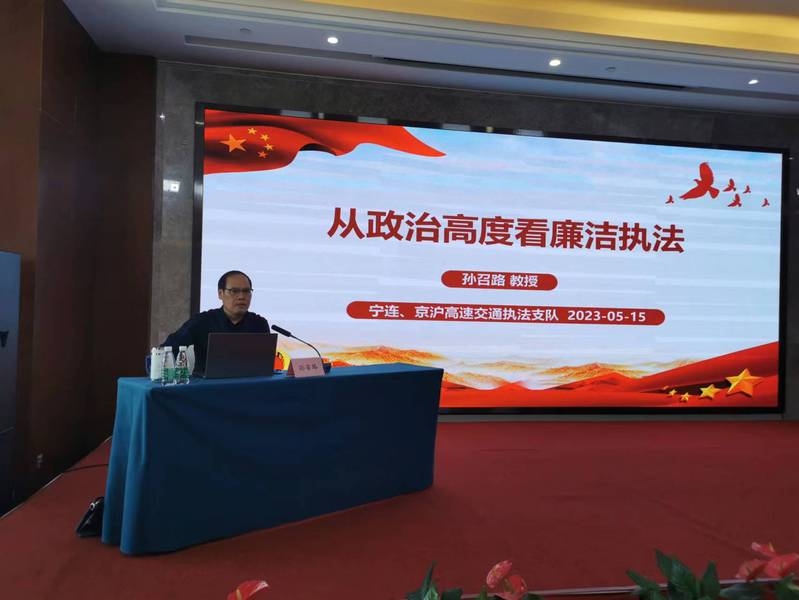 5月15日,应江苏省高速公路交通运输执法支队邀请,我市公安局行政复议委员会委员、谈球吧孙召路教授作《从政治高度看廉洁执法》公益讲座,来自宁连、京沪高速交通执法支队的近百名干警聆听了讲座。
