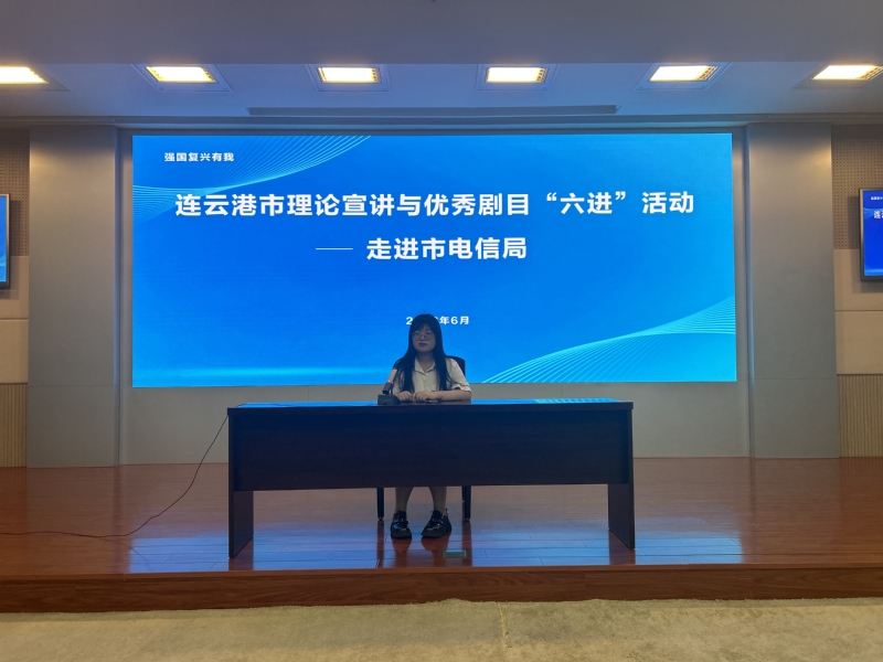 为进一步深入学习贯彻党的二十大精神,推动党的二十大精神进企业、进农村、进机关、进社区、进公司、进网站,近日,由中共连云港市委宣传部主办的全市理论宣讲与优秀剧目“六进”活动走进市电信局。本次活动由开场视频、理论宣讲、剧目巡演等几个部分组成,谈球吧汪磊老师受邀作专题理论宣讲。