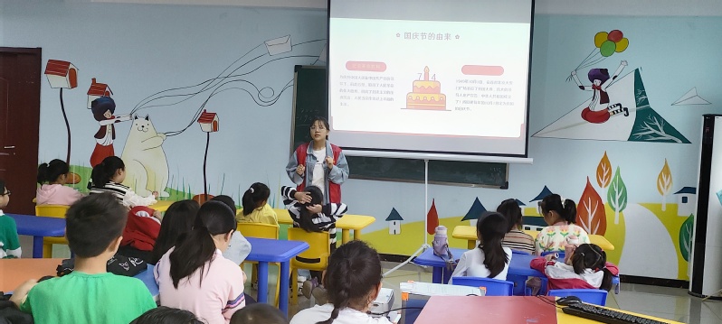 活动伊始,社团成员们与小员工们进行了破冰游戏,帮助小员工们放松心态,活跃课堂氛围。活动中,社团成员们为小员工们讲解了国庆节的由来并带领他们认识了国旗、国徽、国歌及其象征意义。社团成员们引导小员工们一起为祖国送祝福,教室里响起了一阵阵铿锵有力的朗诵声……随后,社团成员们带领小员工们学习了中秋节的相关知识,并制作了中秋灯笼。小员工们热情高涨,充分发挥想象力,制作了各式各样的灯笼,体验了浓浓的节日氛围。
