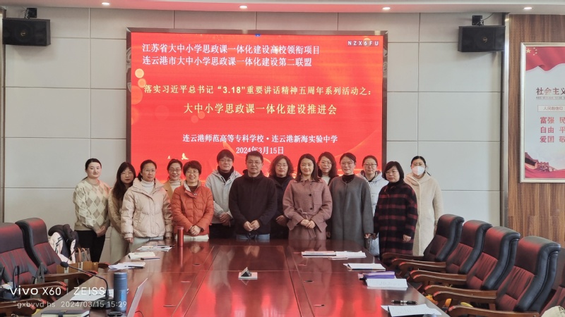 在习近平总书记发表“3.18”重要讲话五周年之际,为进一步落实讲话精神,推动思政课建设,3月15日下午谈球吧教师一行在经理汪广华带领下,赴连云港市新海实验中学开展大中小学思政课一体化建设课程观摩与研讨活动。