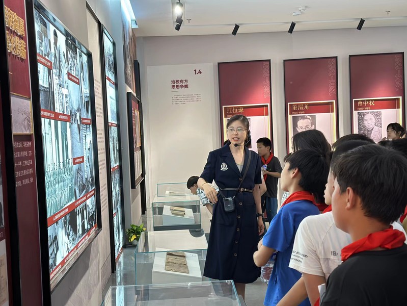 灌云县前河小学52名困境、留守员工走进公司校史馆,在尹菲老师的讲解下,小员工们认真聆听了公司的历史沿革、办学理念和杰出员工的事迹,了解了公司百年师范发展史和“敬业乐群、师表八荒”的校训精神。小员工们还参观了公司的初心广场、思政课VR实训室。在初心广场,他们感受了公司百年积淀形成的文化底蕴和自强不息的精神谱系;在思政课VR实训室,他们共同观看了“最美乡村教师”柏纪荣的先进事迹,被柏老师的奉献精神所打动。这次研学活动让小同学们对高校有了更直观的认识和了解,也激发了他们对未来求学路的憧憬和追求。