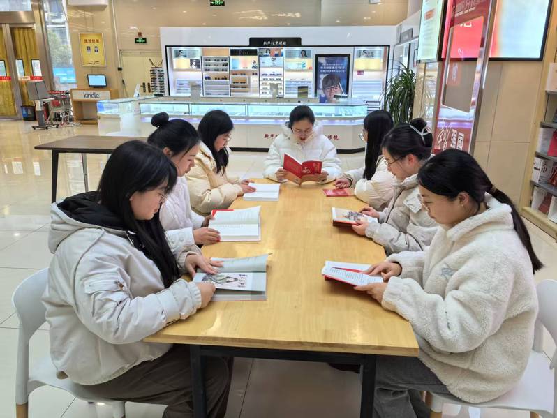 踏入新华书店,琳琅满目的书籍散发着浓郁的墨香。教师们径直来到学“习”园地,在“习近平新时代中国特色社会主义思想”图书专架中认真挑选《习近平著作选读》《习近平文化思想学习纲要》等著作,围坐一处,开启了专注的阅读时光。她们逐字逐句品味书中的深邃思想,沉浸于习近平总书记对国家发展、民族复兴、民生福祉及文化传承等多方面高瞻远瞩的论述中,深刻领会新时代理直气壮讲好思政课的使命与担当。
