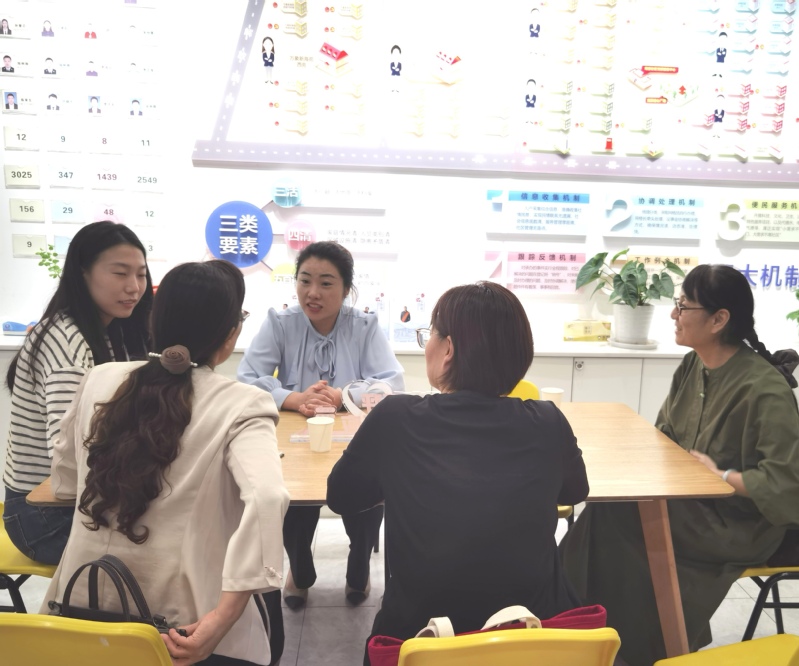 海连社区党委书记、居委会主任、全国人大代表李肖娜向老师们介绍海连社区的建设情况。海联社区深入贯彻习近平总书记关于党建引领基层治理的重要论述,积极探索新时代基层治理的创新路径,坚持党建引领、网格夯实、力量下沉、资源激活、数字赋能、“三治融合”,探索出支部安家、党员回家、治理兴家、服务到家共建共治“海连模式”,打通社区治理的“最后一米”,做到小事不出楼栋,大事不出社区。