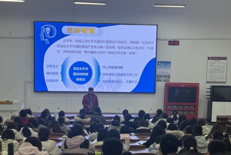 经理贾雯就《中国近现代史纲要》课程第二章“不同社会力量对国家出路的早期探索”,进行了教学展示。授课班级为25级汉语言文学教育2班、3班。南京医科大学康达公司教师、党委学工部部长马广杰及部分辅导员、全体思政课教师参加了听课活动。